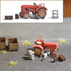 Action Set для реалистичного оживления вашего модельного мира. Монтажник, который выполняет ремонт под трактором. С трактором, тележкой, ящиком для инструментов, инструментом и канистрами.
