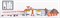 3 дорожных рабочих в рабочей одежде эпохи V. С различными заграждениями, соответствующими дорожными знаками, пилонами, грудами песка и инструментами для строительства дорог.
